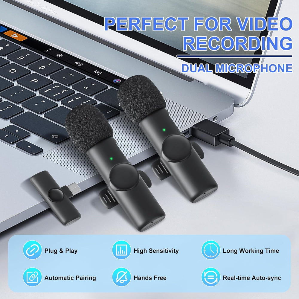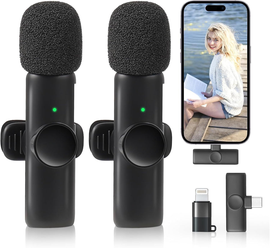 ZWOOS Lavalier Mikrofon, Wireless Mini Mikrofon kompatibel mit Type C/iPhone iPad, Handy-Mikrofon fü