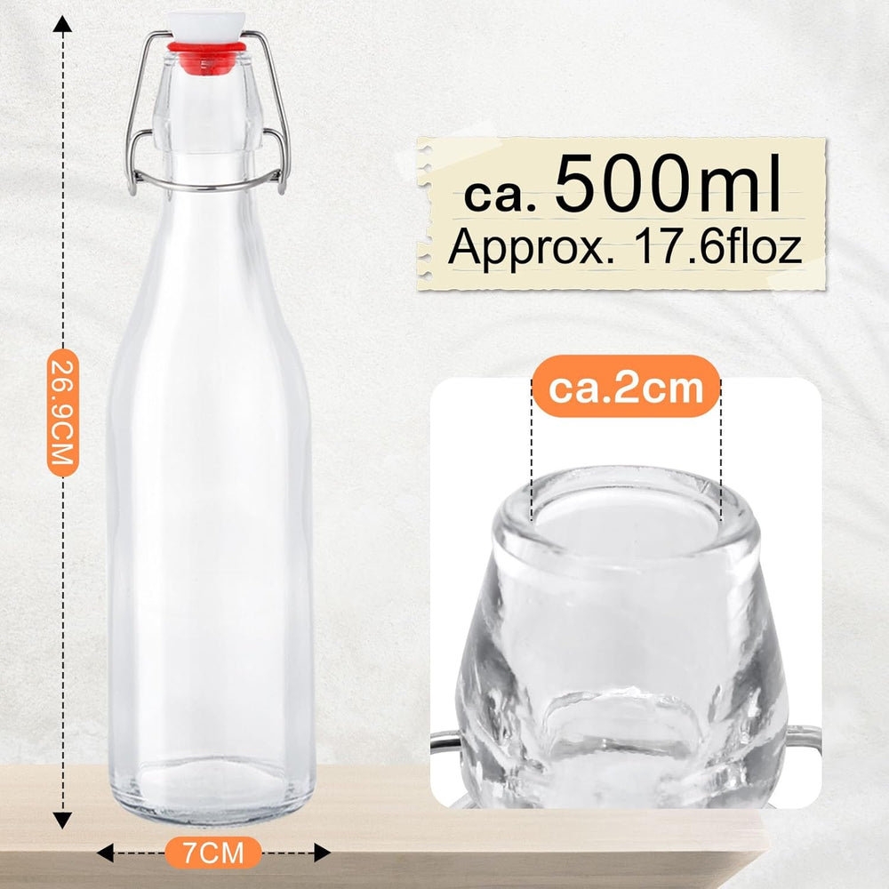 Zanfqvo Glasflaschen 500ml mit Bügelverschluss, 6 Stück Kleine Flaschen Zum Befüllen, Bügelflasche z