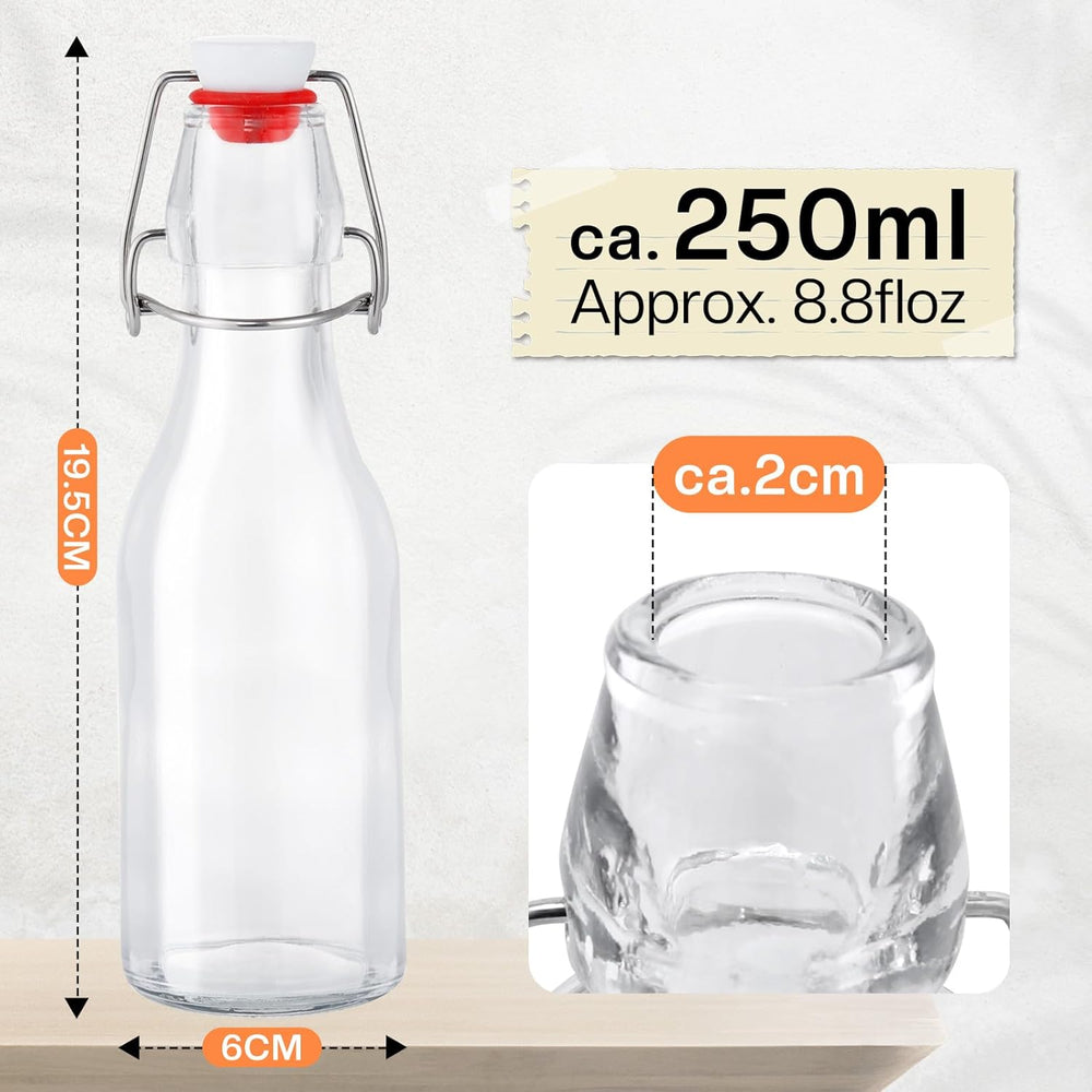 Zanfqvo Glasflaschen 250ml mit Bügelverschluss, 10 Stück Kleine Flaschen Zum Befüllen, Bügelflasche