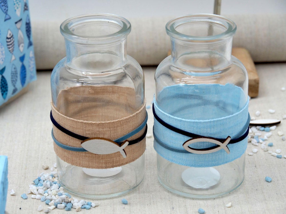 ZauberDeko Tischdeko Kommunion Konfirmation Blau Fisch Holz Tischaufsteller Set 20 Personen