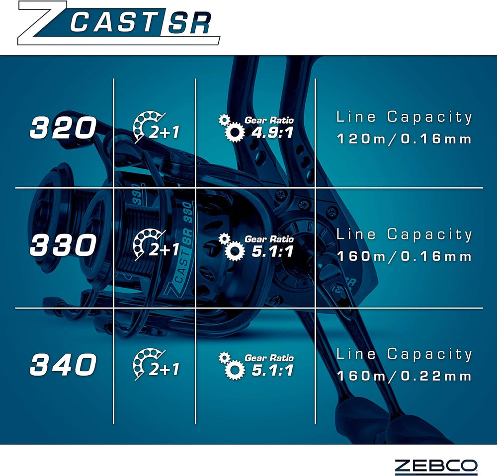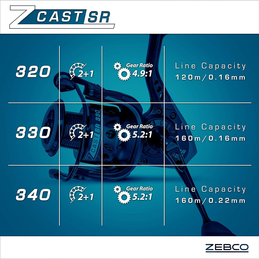 Zebco Premium Z-Cast SR 340 Angelrolle mit Leichter Aluminium Spule, Schwarz-Blau