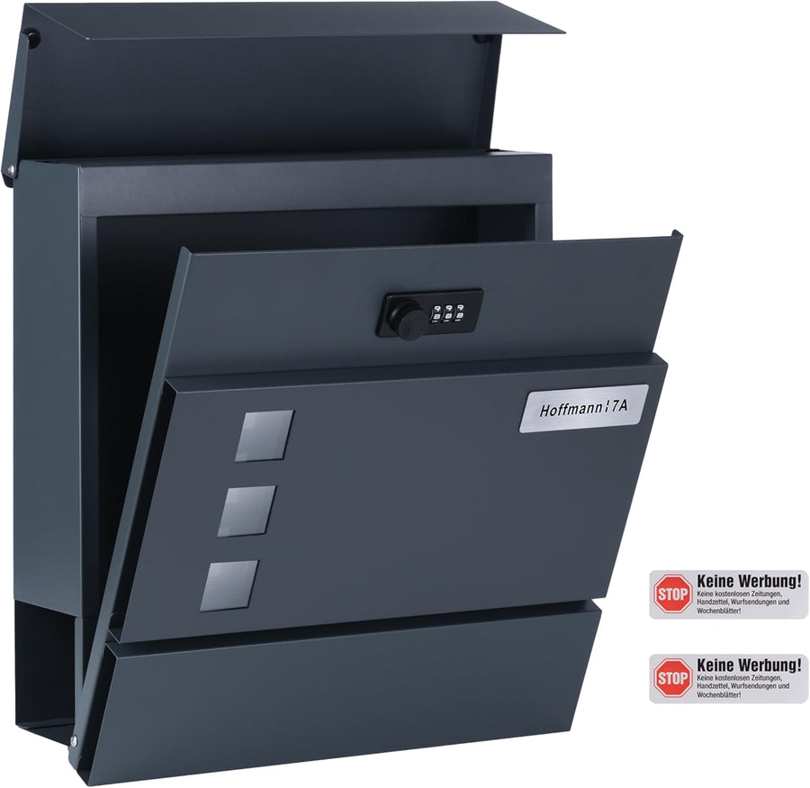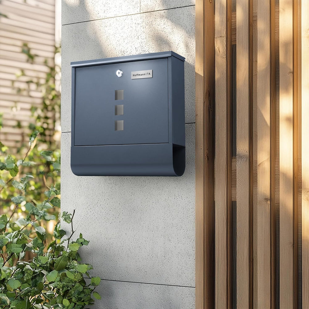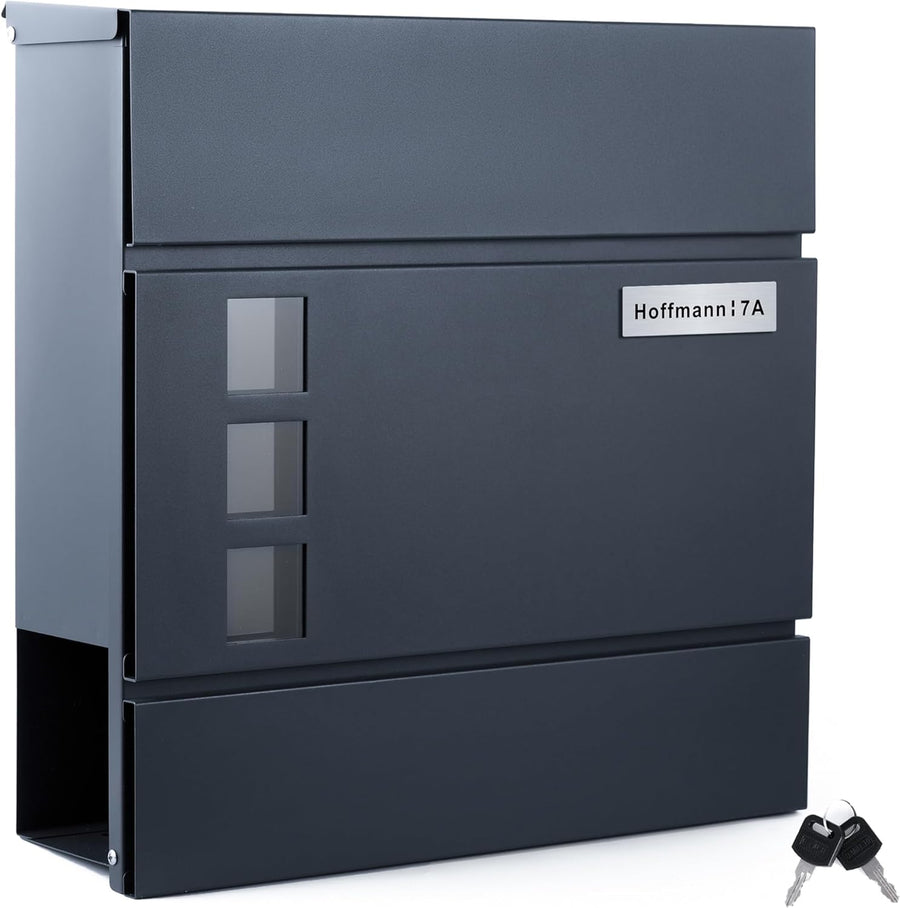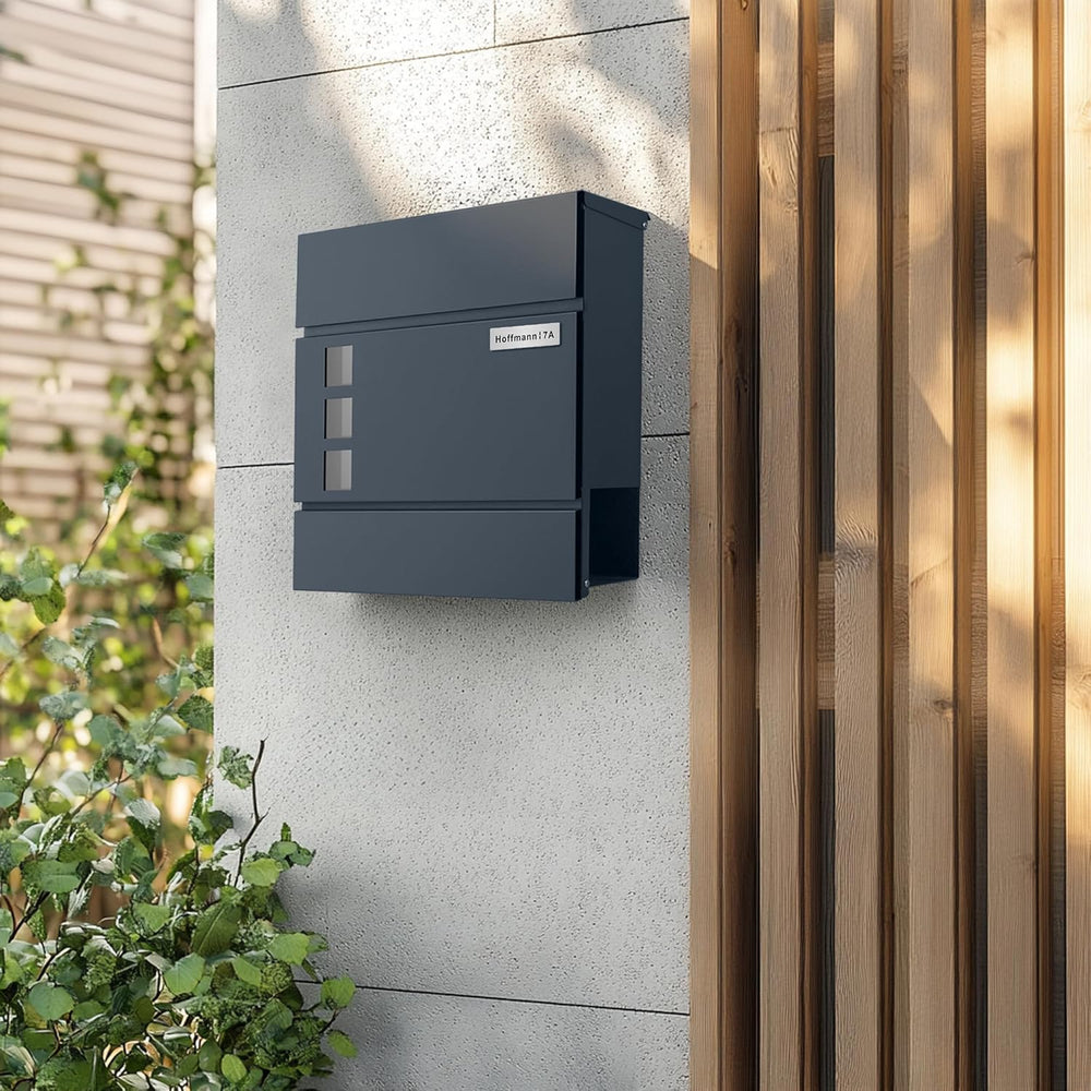 XL personalisiert Briefkasten mit Edelstahl Namensschild Anthracite Wandbriefkasten Postkasten Brief