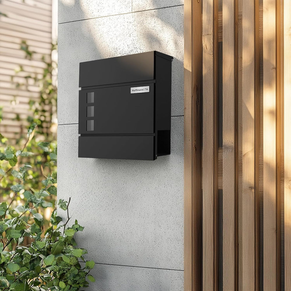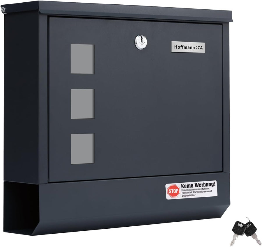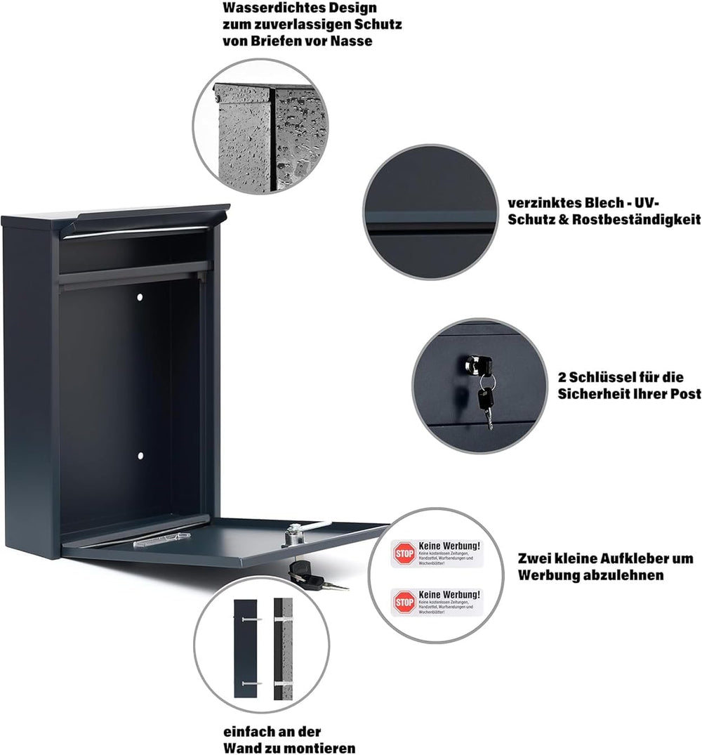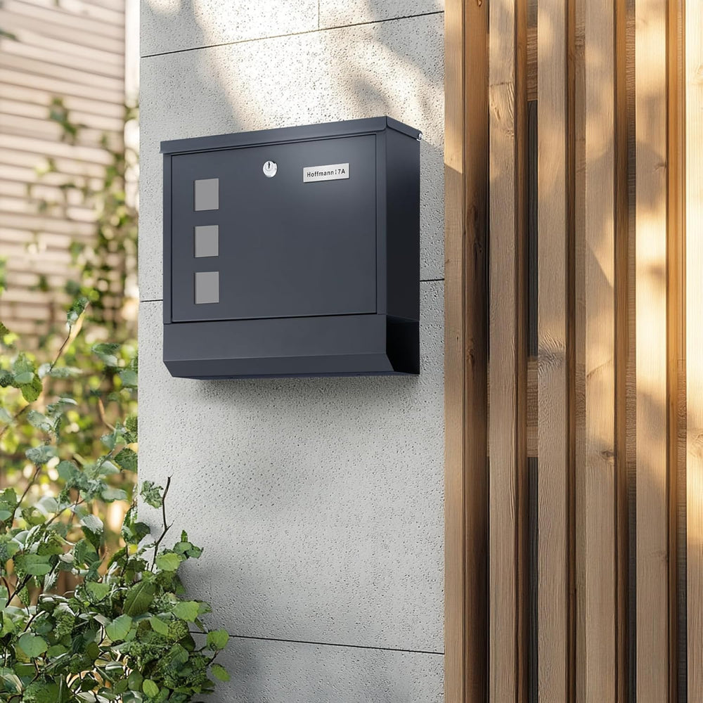 XL personalisiert Briefkasten mit Edelstahl Namensschild Anthracite Wandbriefkasten Postkasten Brief