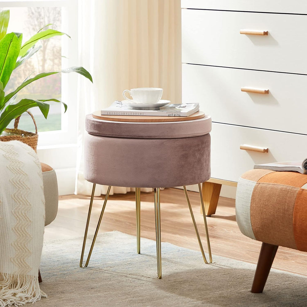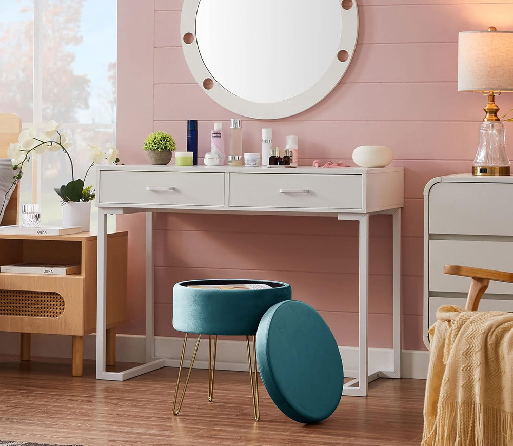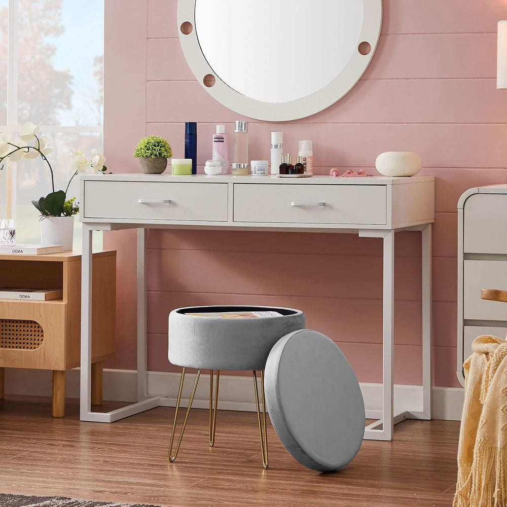 Zedelmaier Runder Sitzhocker Schminktisch Hocker Ottoman Gepolsterter Hocker Abnehmbarer Bezug Metal