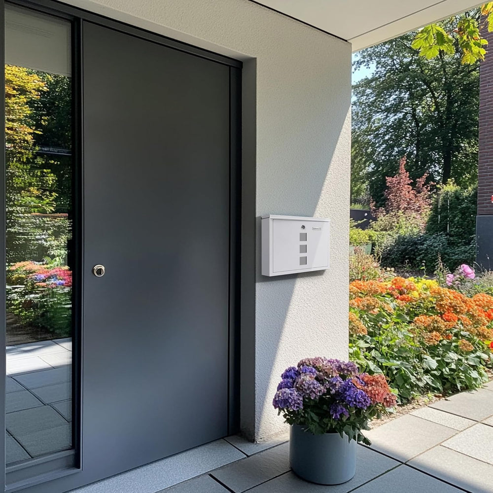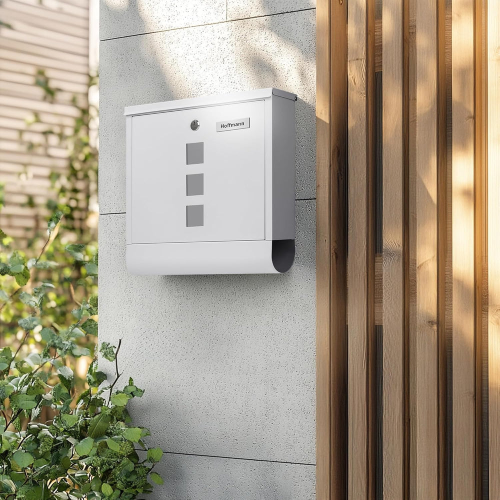 Zedelmaier XL personalisiert Briefkasten mit Edelstahl Namensschild Weiss Wandbriefkasten Postkasten