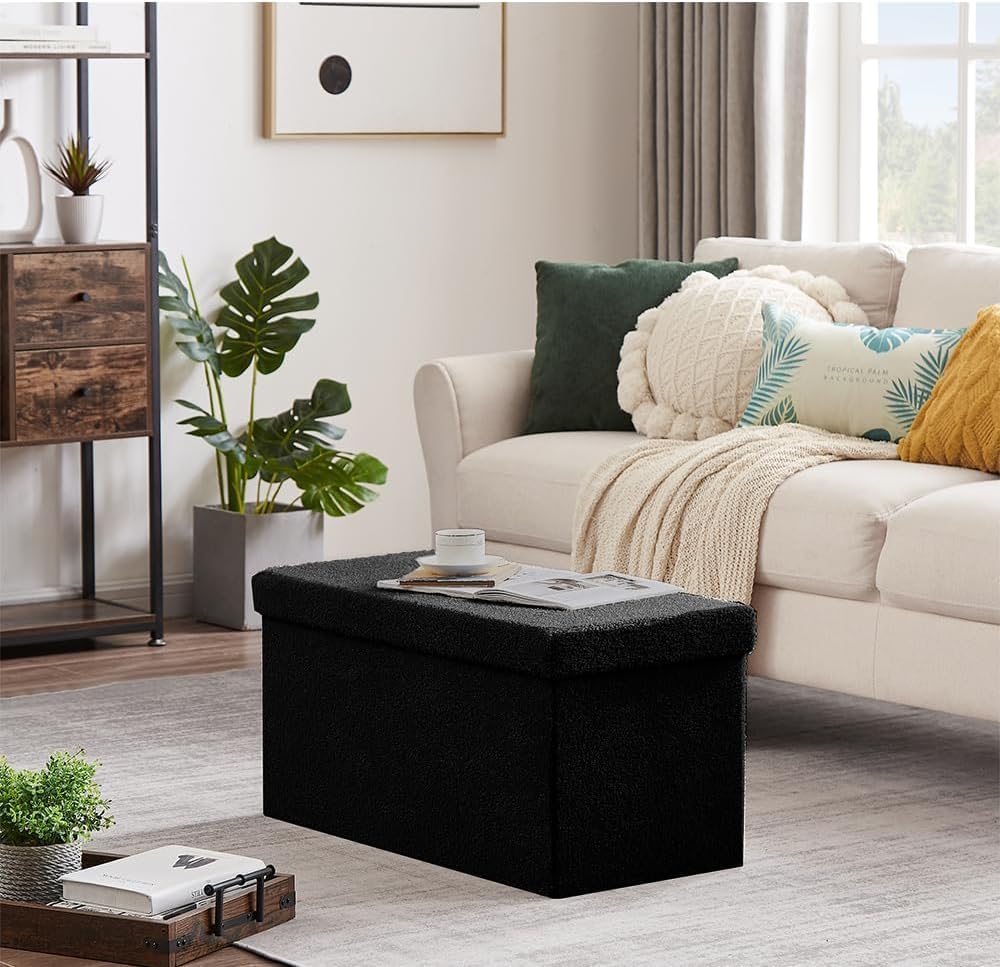 Zedelmaier Sitzbank Sitzwürfel mit Stauraum Plüschstoff Fussbank Truhen Aufbewahrungsbox faltbar bel