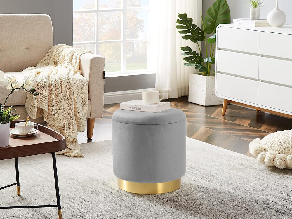 Zedelmaier Zylindrischer Samt Aufbewahrungshocker,Ottoman,Fussbank Hocker,Aufbewahrungsbox Hocker,Ma