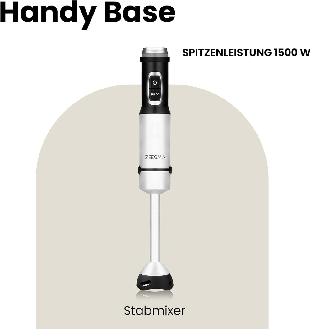 ZEEGMA HANDY BASE Stabmixer für Suppen, Smoothies, Leistung 1500 W, Geschwindigkeitsregelung, Titank