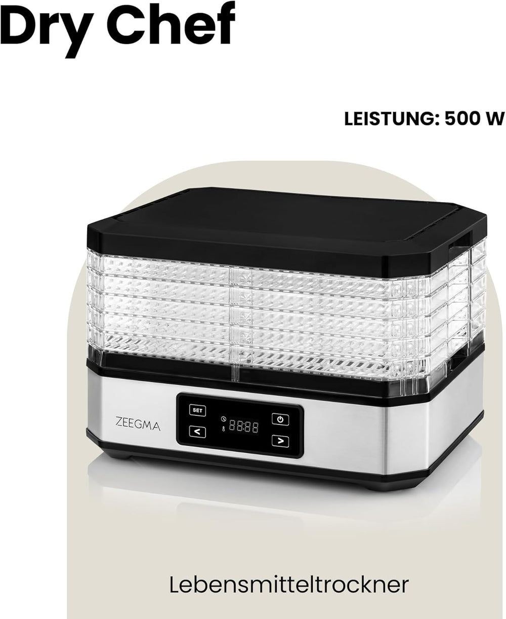 ZEEGMA DRY CHEF Lebensmittel- und Pilztrockner Leistung 500 W, Lebensmitteltrockner für Obst und Gem