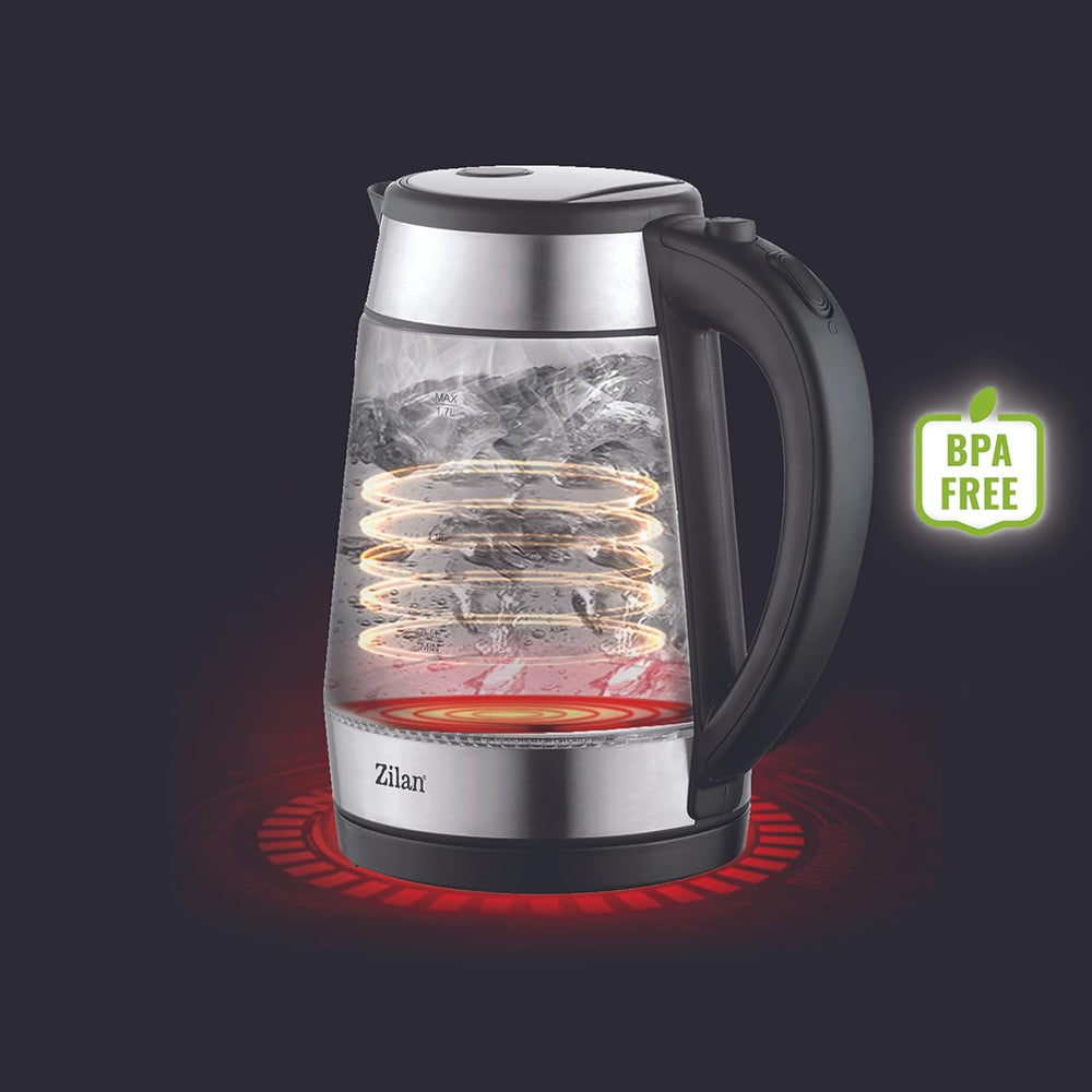 Teekocher | 100% BPA-Frei | Sicherheitsglas | Kalkfilter | 2200 Watt | Überhitzungsschutz | Tee | |