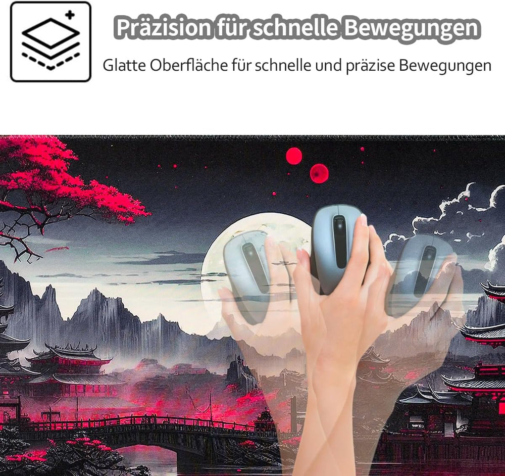Zindoo XXL Gaming Mauspad 900 x 400 mm – Schwarzes Anime Mousepad mit Rutschfester Gummibasis – Gros