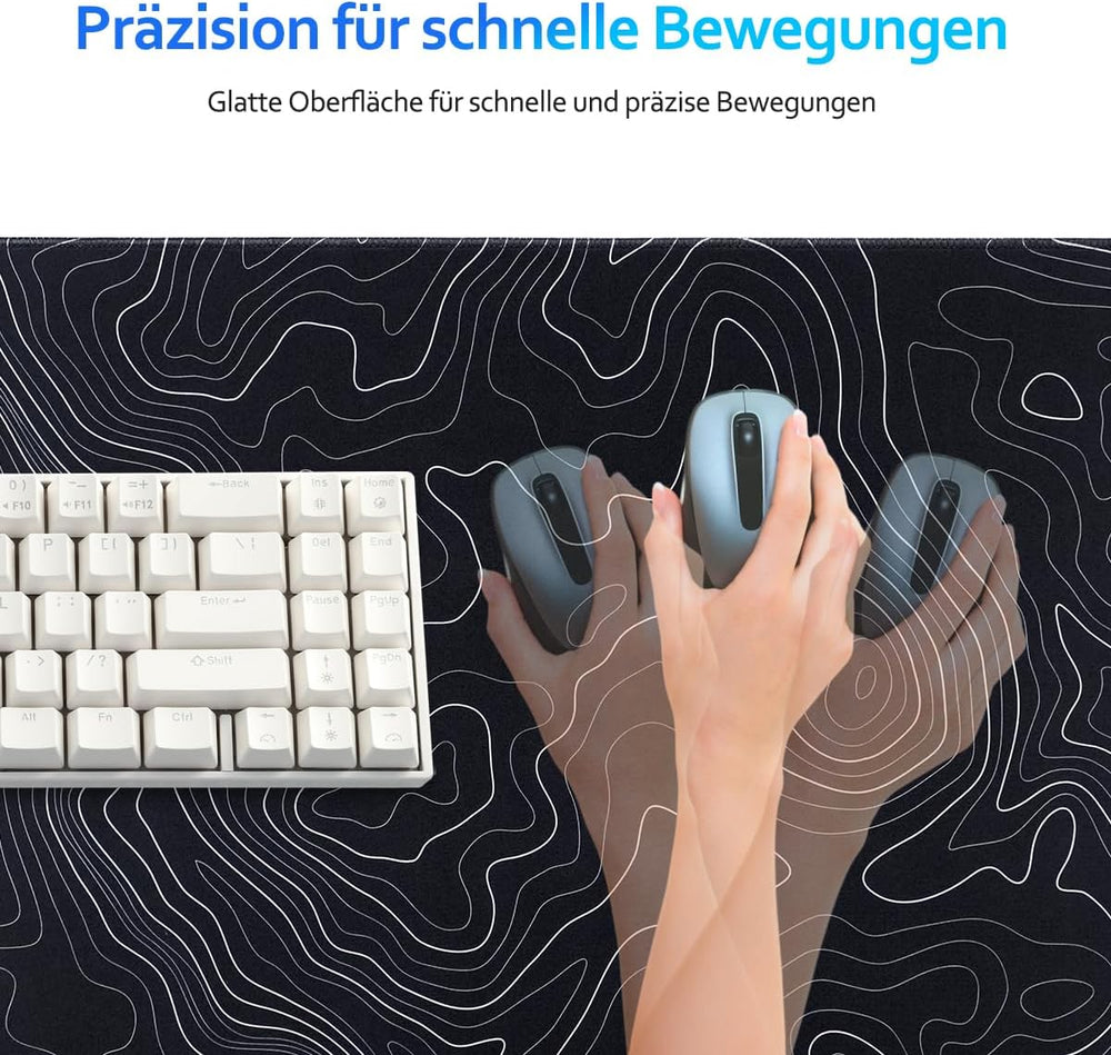 Zindoo XXL Mauspad 900 x 400 mm – Weisses Gaming Mousepad mit Topografischem Linienmuster – Präzise