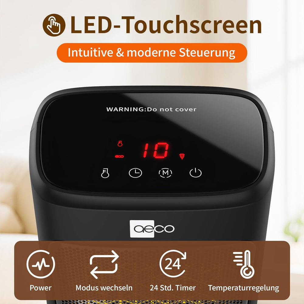 aeco EcoHeat Core 2000W Heizlüfter Energiesparend klein LED Touch ECO-Modus leise Mini Heater 24 Std