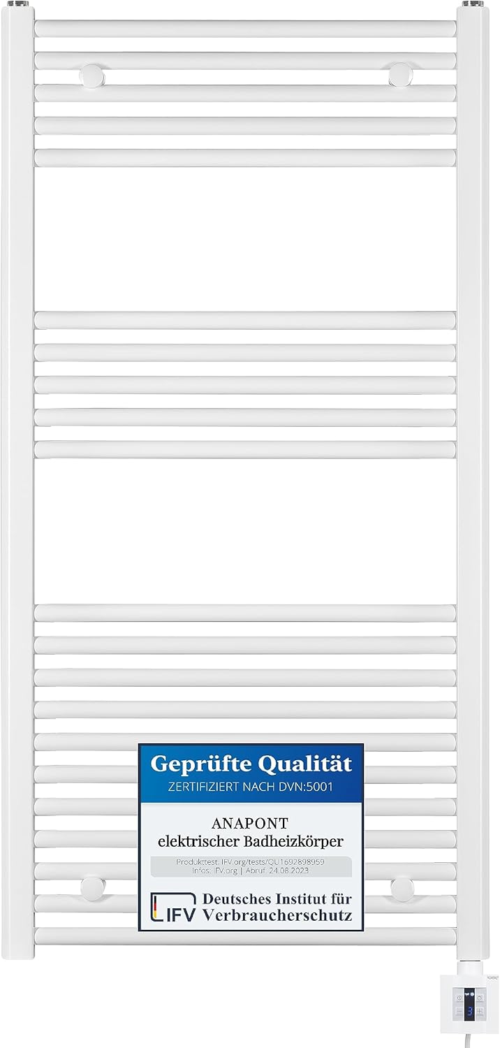 anapont elektrischer Badheizkörper 1175x500 - weiss gerade - Timer-Funktion - Handtuchheizkörper - B