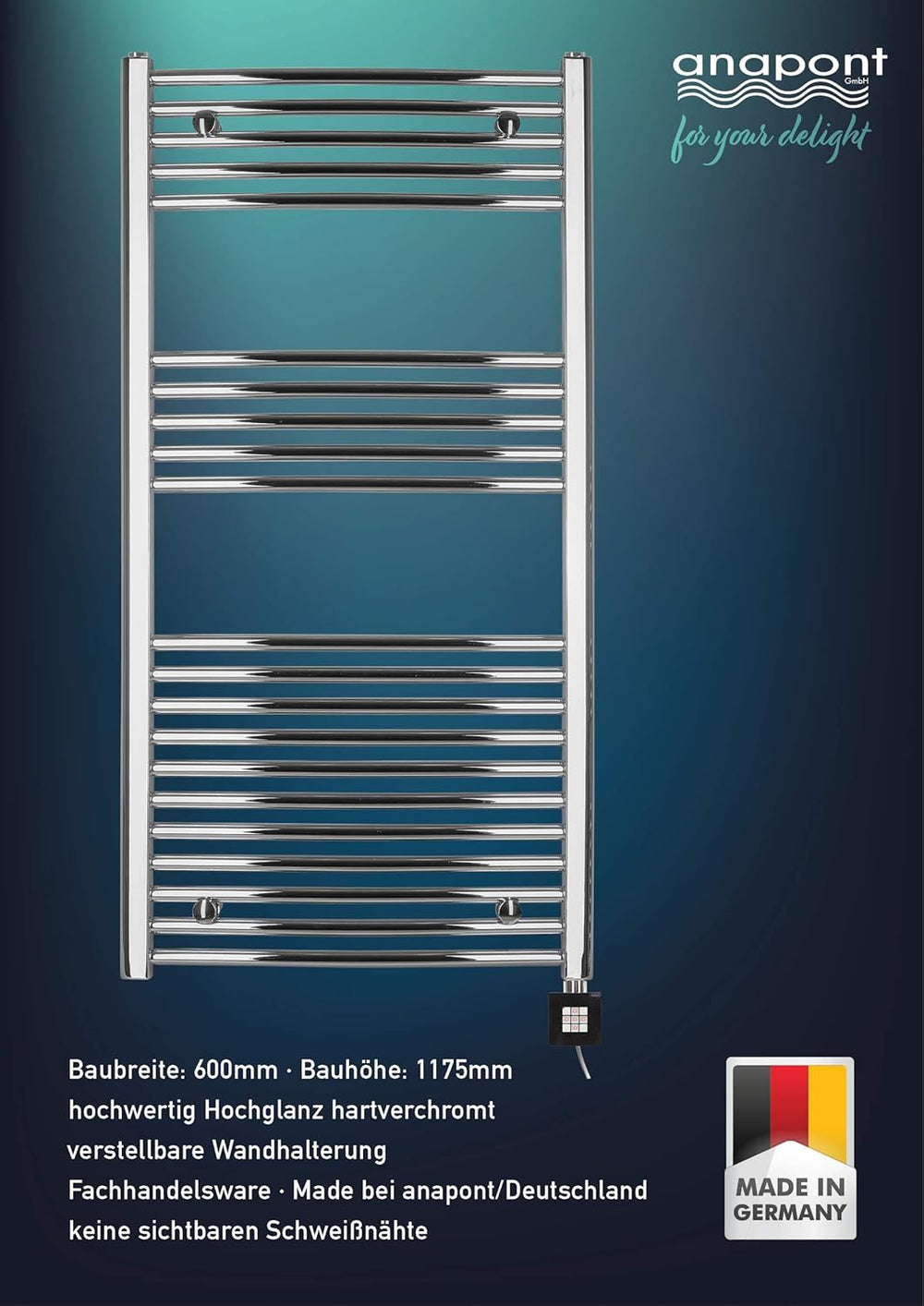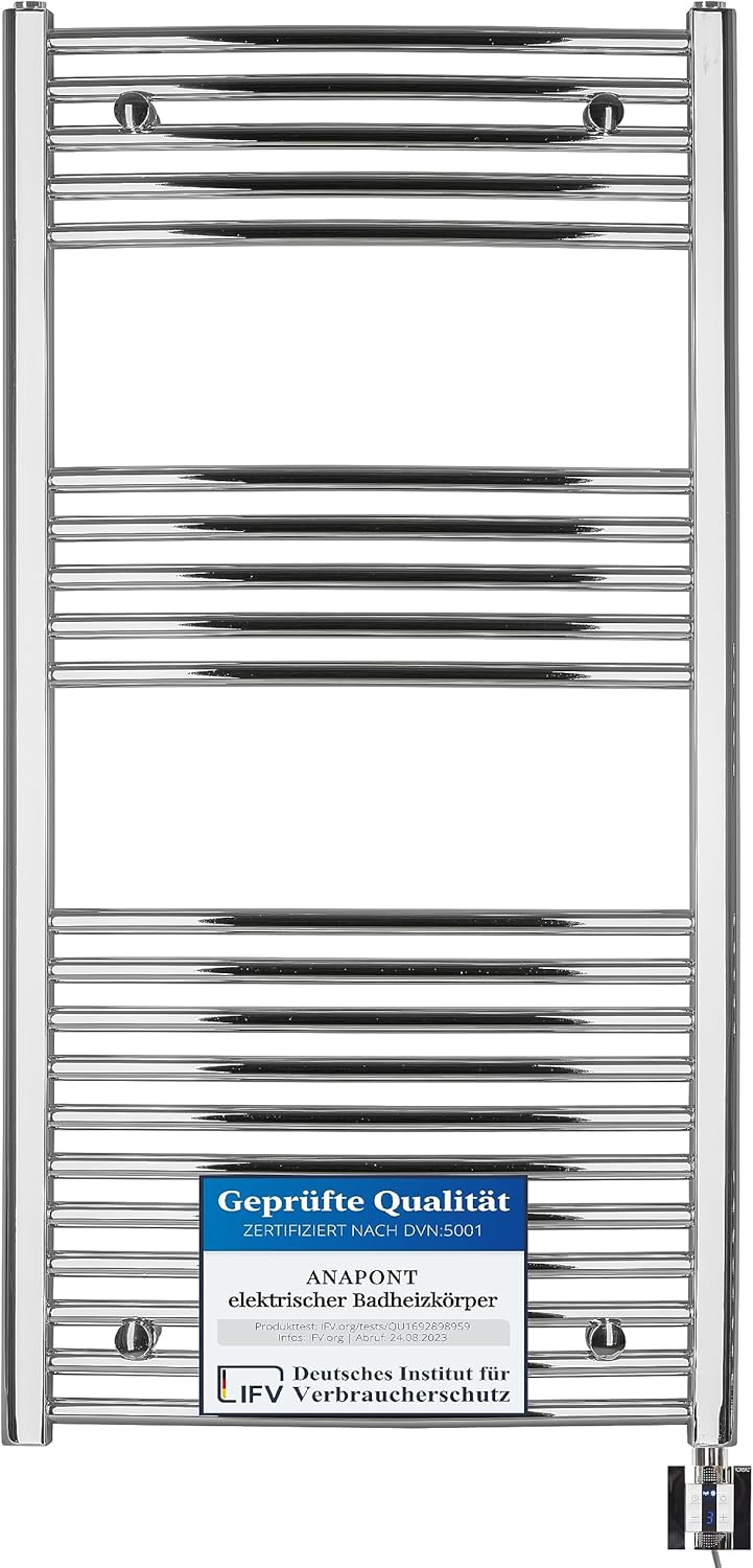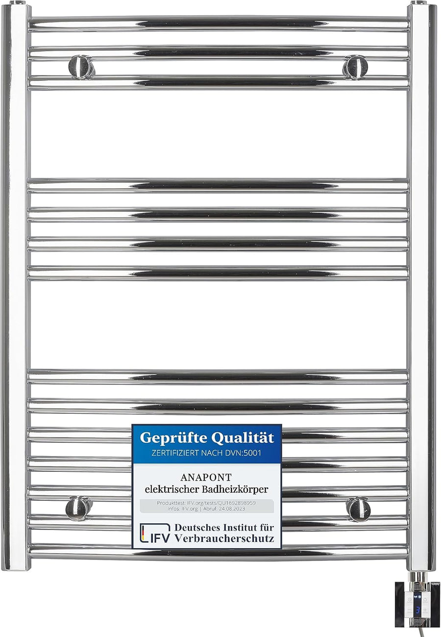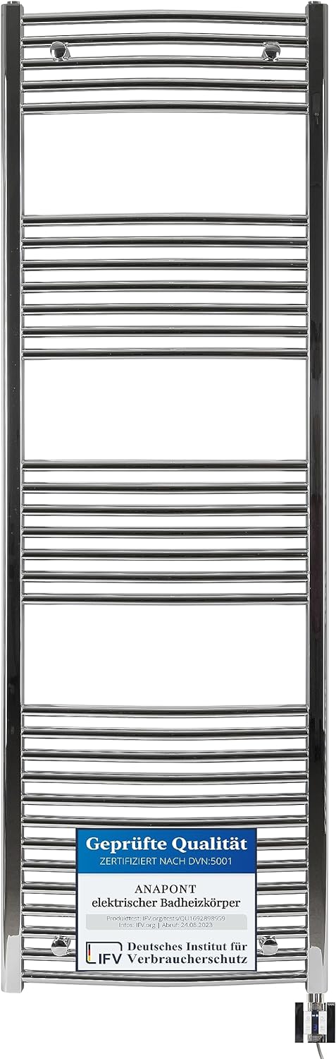 anapont elektrischer Badheizkörper - Chrom gebogen - Timer-Funktion - Handtuchheizkörper - Badheizun