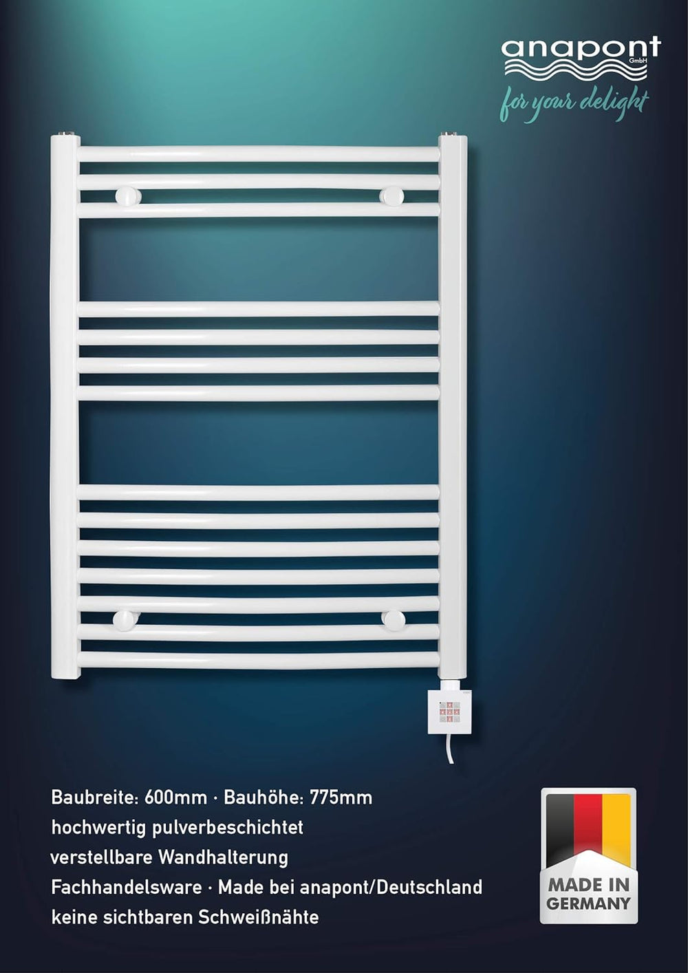 anapont elektrischer Badheizkörper - weiss - Timer-Funktion - Handtuchheizkörper - Badheizung elektr