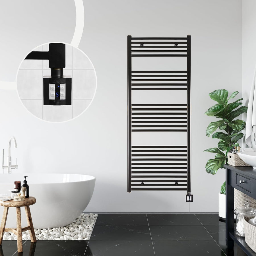 anapont elektrischer Badheizkörper 1475hx600b - schwarz - mit Timer-Funktion - Handtuchheizkörper -
