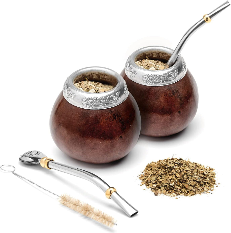 BALIBETOV Set aus Natürlichem Kürbis Tasse für Mate Tee Handgefertigt Inkl. Strohhalm (Yerba Mate St