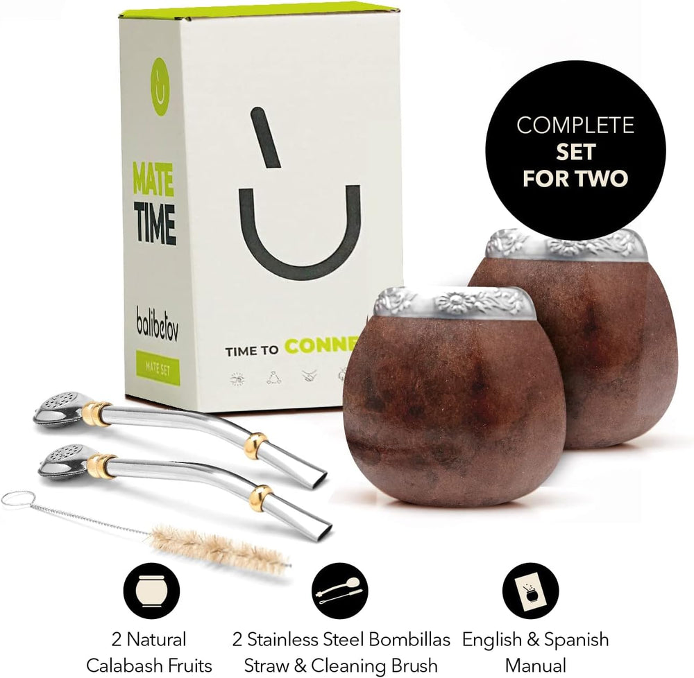 BALIBETOV Komplettes Yerba Mate Set – Moderner Mate Gourd, Thermos, Yerba Behälter, zwei Bombillas u