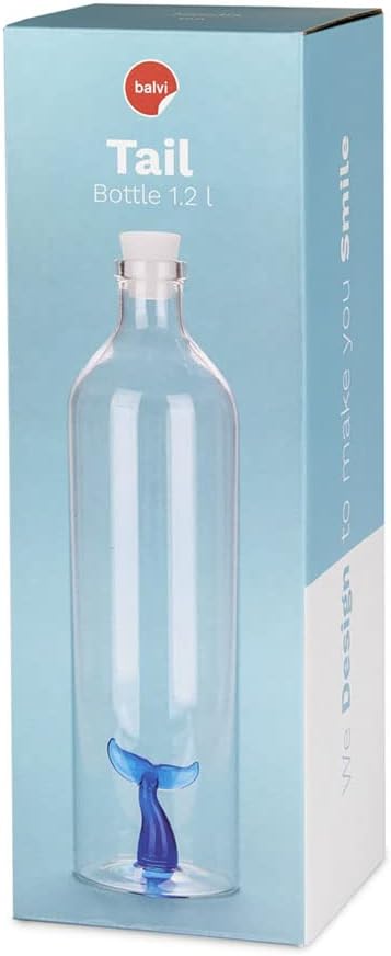 balvi Flasche Tail Farbe Blau Mit Figur in Form eines Wals Borosilikatglas