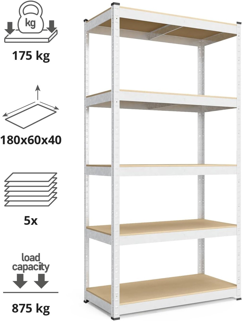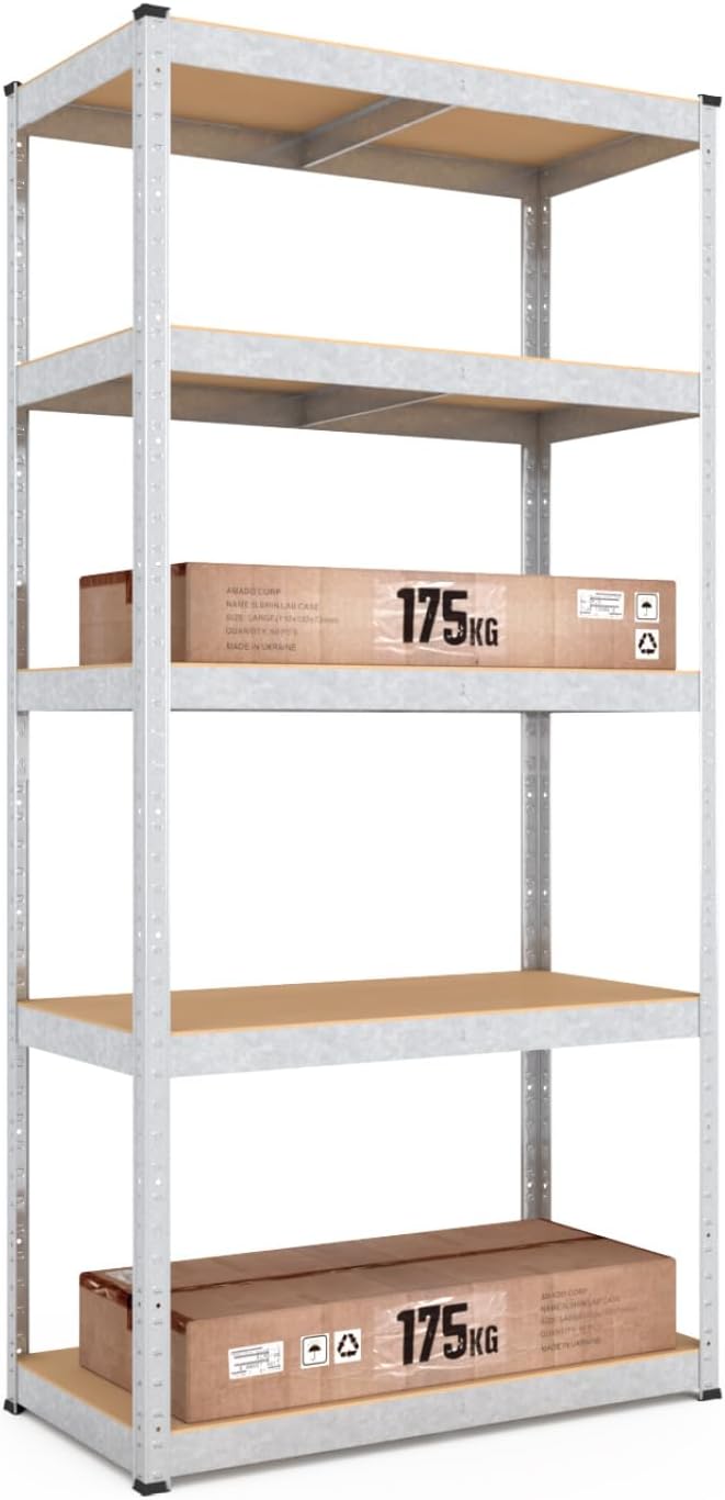 baudim - 180x60x40cm Schwerlastregal/Steckregal mit 5 Böden und 175kg Tragkraft, Metallregal, Garage