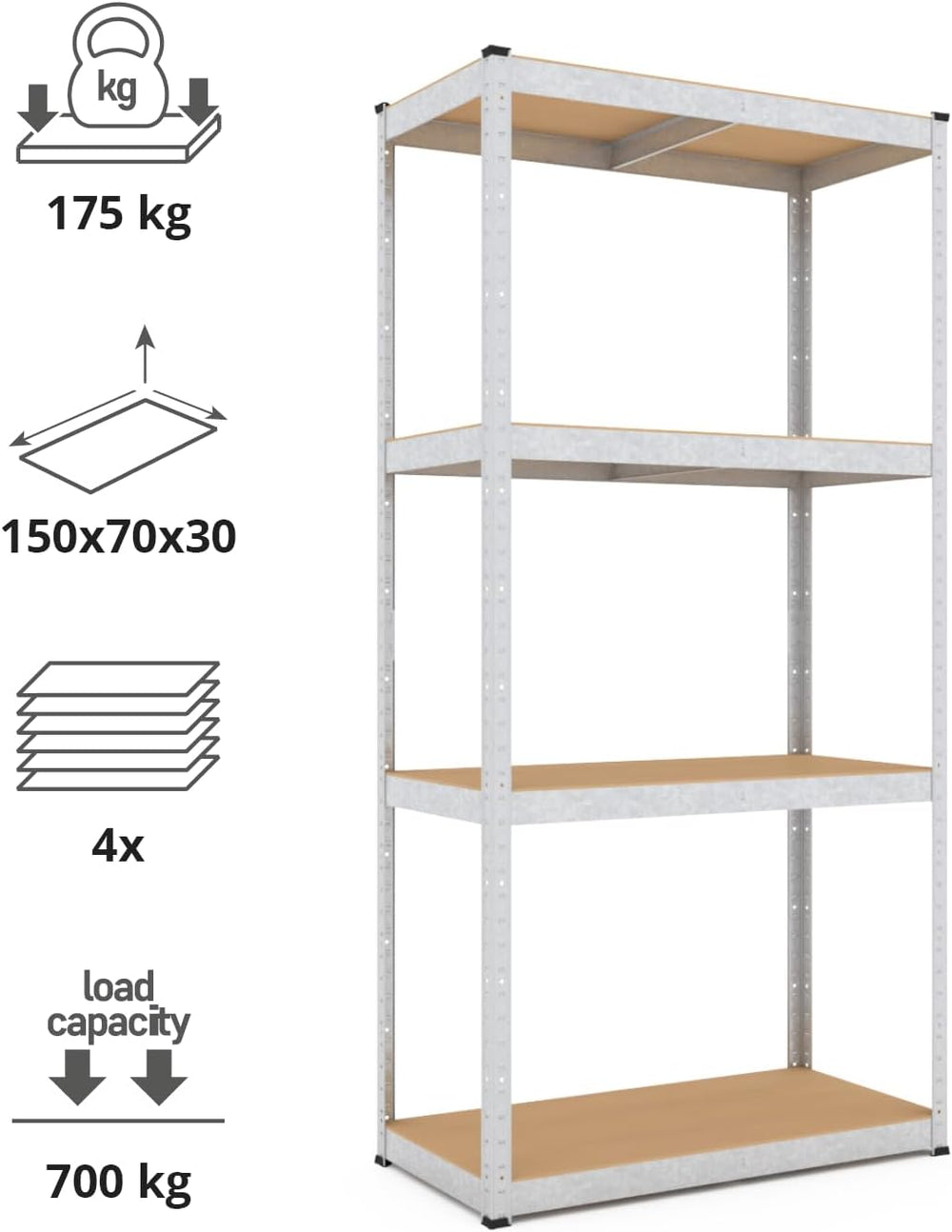 baudim - 180x70x30cm Schwerlastregal/Steckregal mit 5 Böden und 175kg Tragkraft, Metallregal, Garage