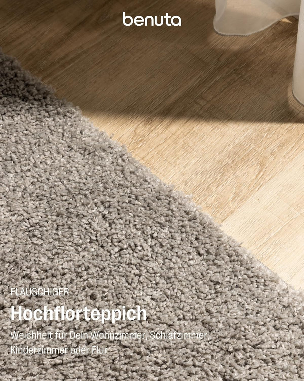 benuta Hochflorteppich SOHO Beige 80 x 150 cm - Kuschelig Weicher Teppich im Minimalistischen Look -