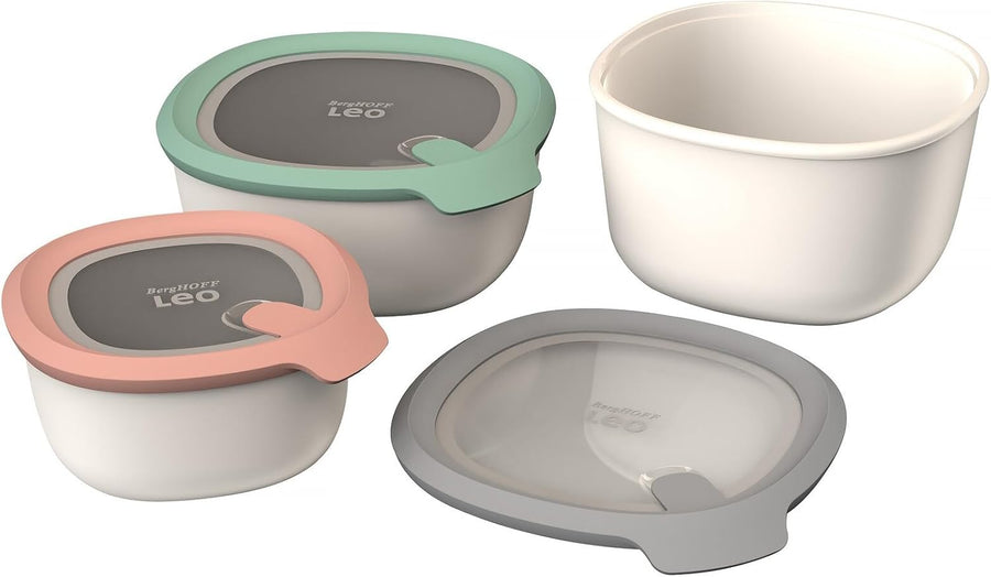 Berghoff 3950220 Set mit 3 stapelbaren Lebensmittelbehältern, Deckel aus Silikon, geeignet für Kühls