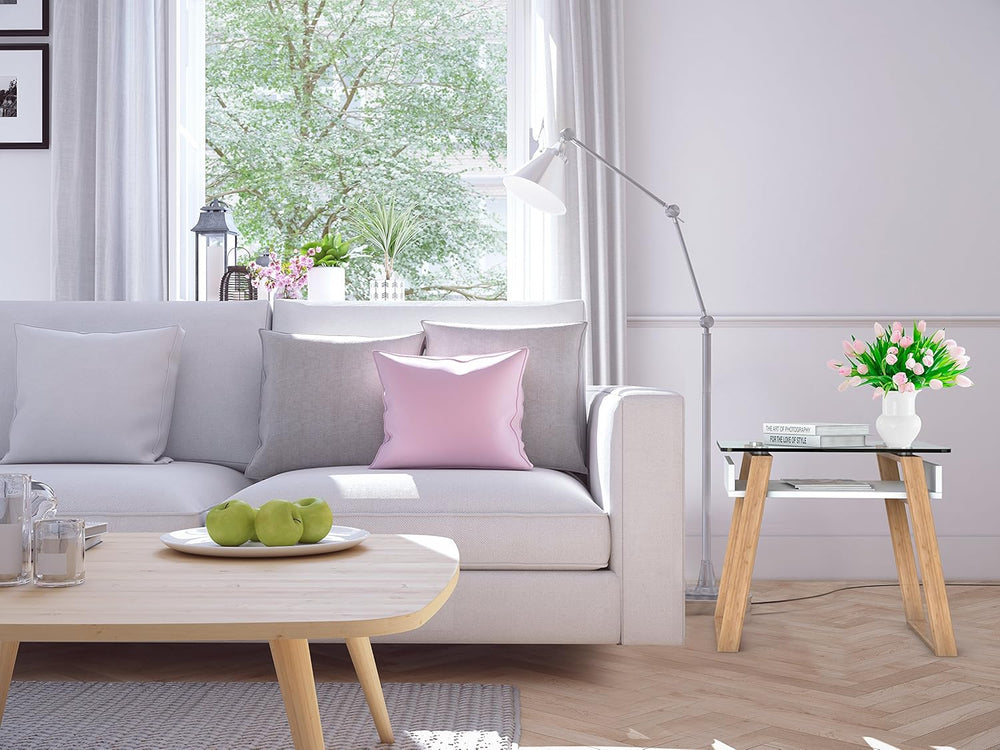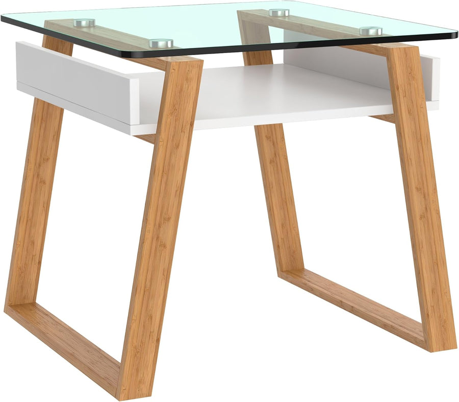 bonVIVO Beistelltisch weiss mit Glas Holz Materialmix - Couchtisch, Sideboard, Wohnzimmertisch - Mod