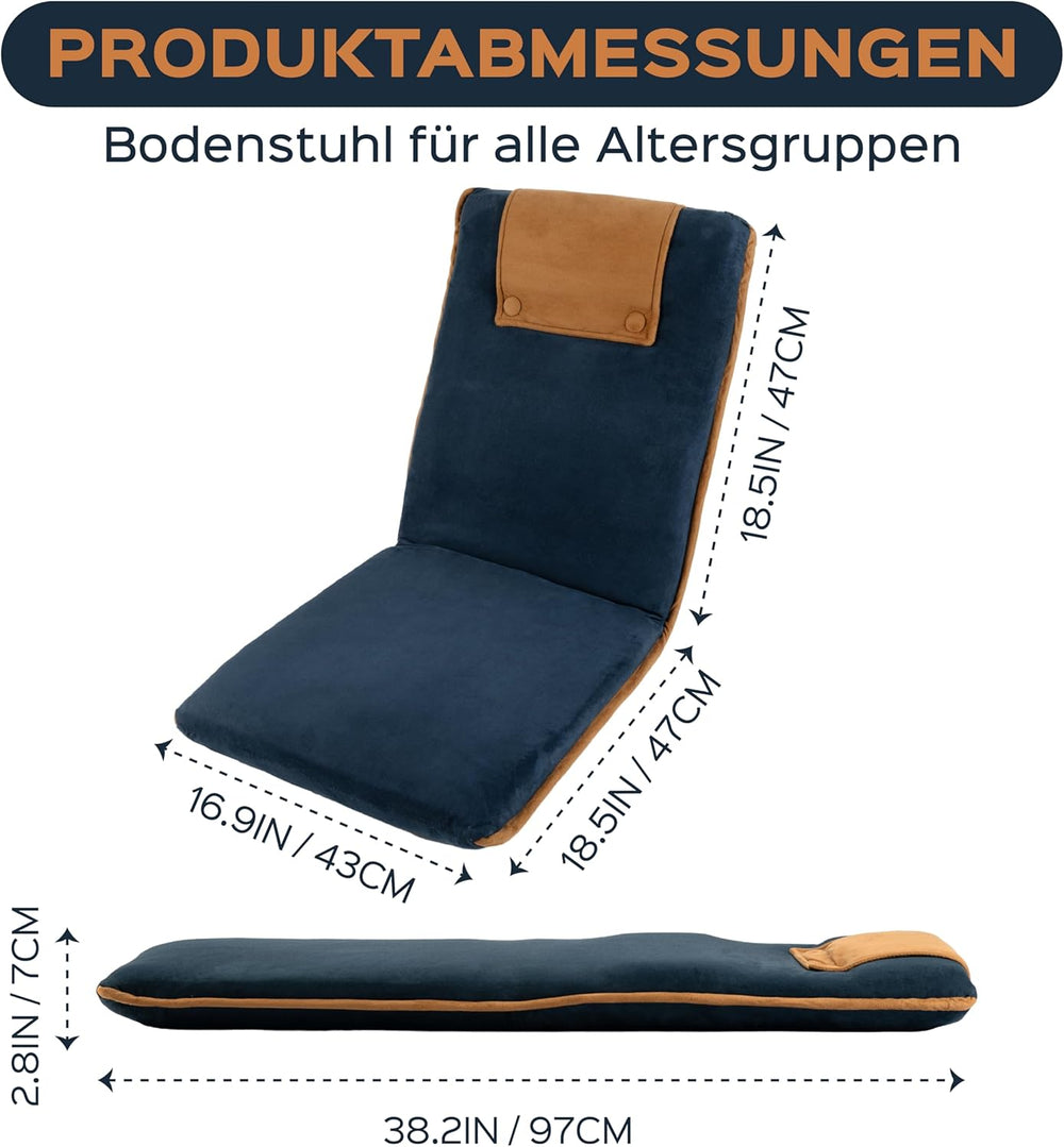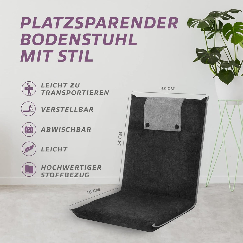 bonVIVO Easy Lounge Bodenstuhl mit Rückenlehne - Faltbarer Bodensessel, Gepolstert & Verstellbar - M