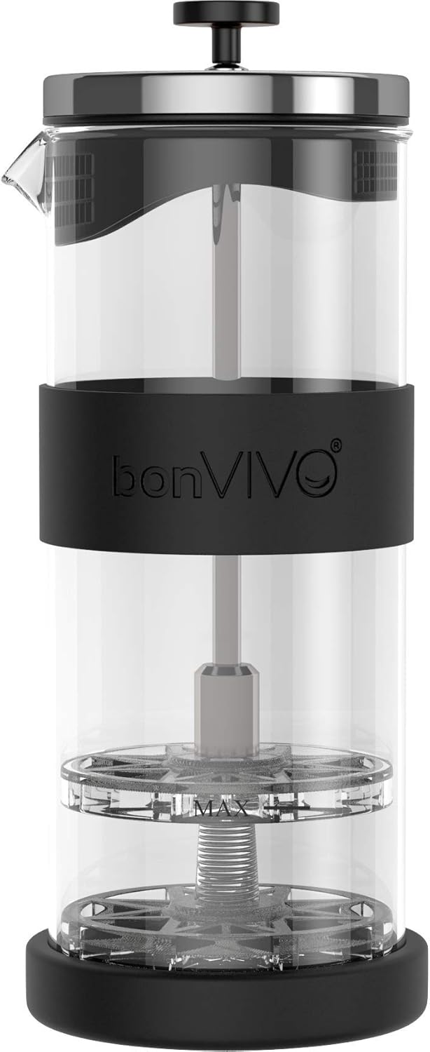 bonVIVO FOMO, Milchaufschäumer Manuell Betrieben, Milchaufschäumer Glas Und Edelstahl, Hand Milchsch