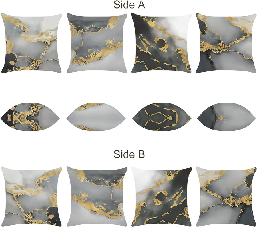 Bonhause 4er Set Kissenbezüge Marmor Grau 45 x 45 cm Doppelseitig Schwarz Gold Abstrakte Kunst Samt