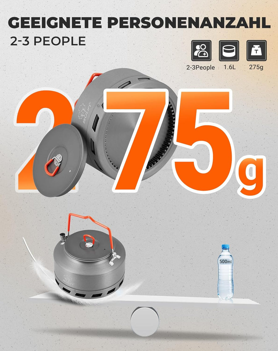 Bulin Camping Wasserkessel Grösser Kaffeekanne Wasserkocher 2-3 Personen Kochen Leicht Faltbar Dauer