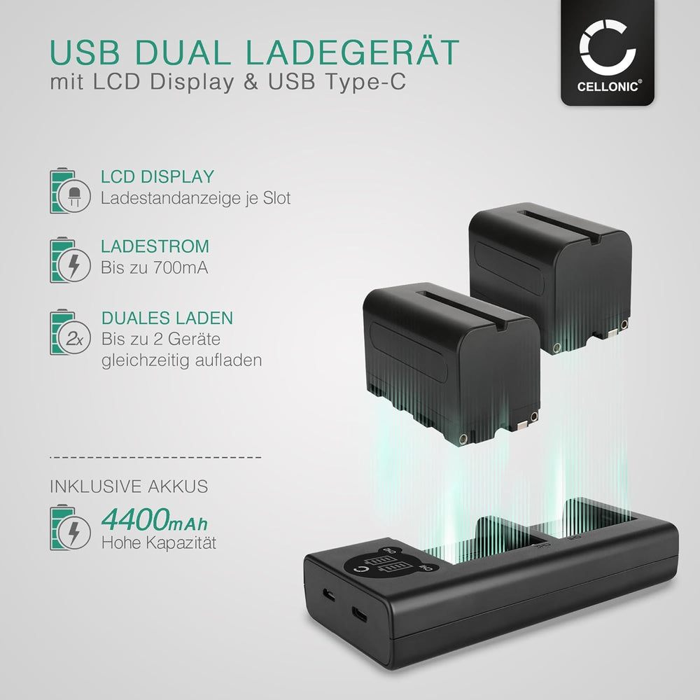 CELLONIC® 2X Akku NP-F970 NP-F960 NP-F570 NP-F770 kompatibel mit Sony NX100 NX5 HXR-MC2500 MC2000 VX