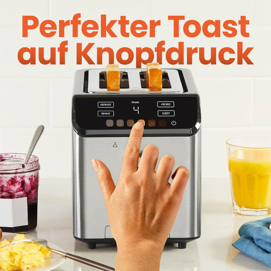 Chefman Smart Touch 2 Scheiben Digital Toaster, 6 Farbeinstellungen, Toaster Edelstahl mit extrabrei