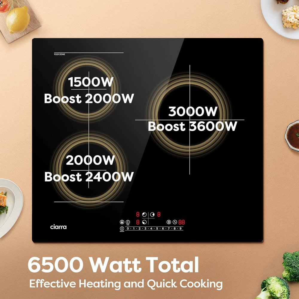 CIARRA CBBIH3BF Einbau Induktionskochfeld 60 cm 3 Zonen mit ein Flexzone Booster Touch-Bedienung Koc