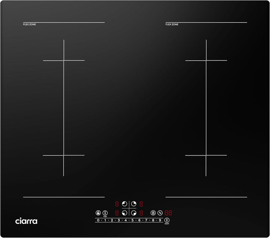 CIARRA CBBIH4BFF 4 Zonen Einbau Induktionskochfeld mit Zwei Flexzonen Power Booster Touch-Bedienung