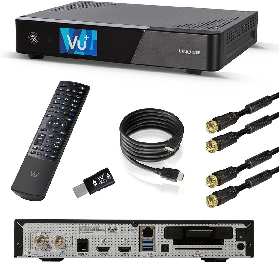 VU+ UNO 4K SE 1x DVB-S2 FBC Twin Tuner Linux Receiver (UHD, 2160p) schwarz, inkl. HDMI-Kabel + 2X Sa