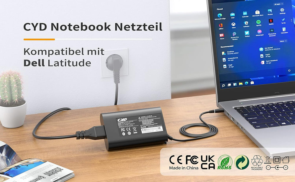 CYD 65W Notebook Netzteil für Dell Laptop Dell Latitude 3300 3380 3480 3580 5280 5280 5285 5289 5290