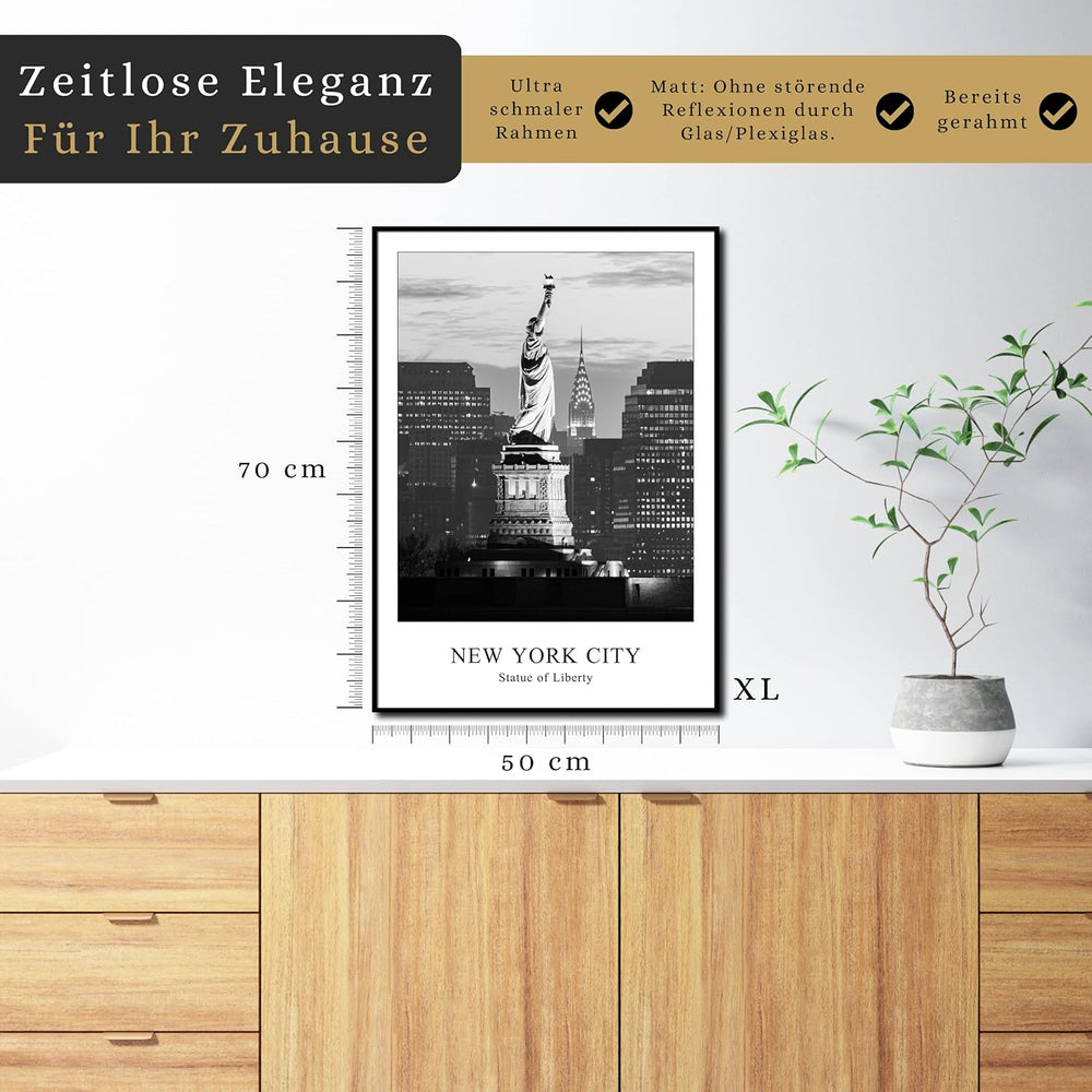 daazoo Rahmenbild Statue of Liberty & Chrysler Building | Wandbild mit Rahmen schwarz Hochformat | B