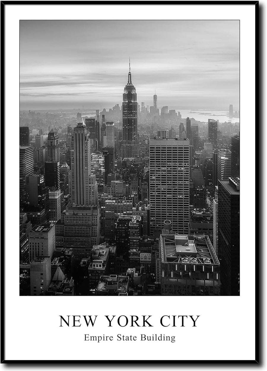 daazoo Rahmenbild Empire State Building | Wandbild mit Rahmen schwarz Hochformat | Bild New York Cit