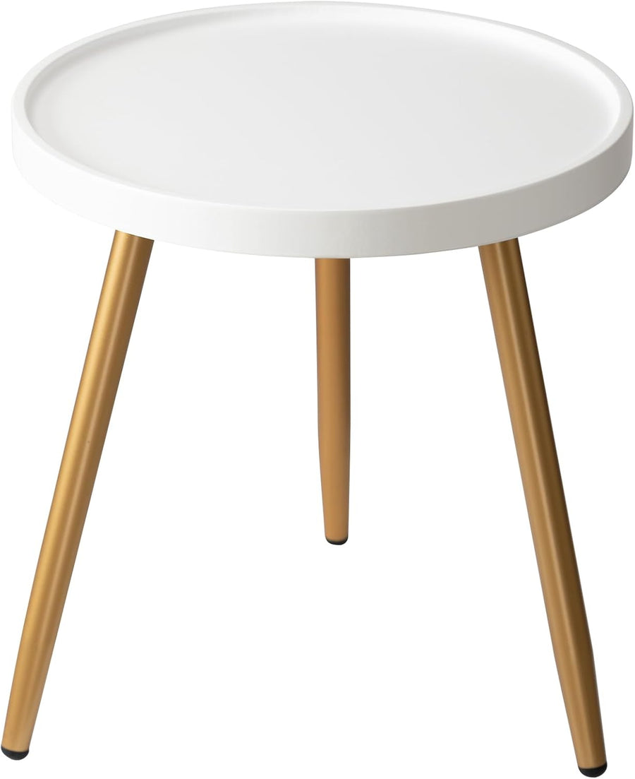 danpinera Runder Beistelltisch, Akzenttisch mit Metallbeinen und Holztablett, Kleiner runder Beistel