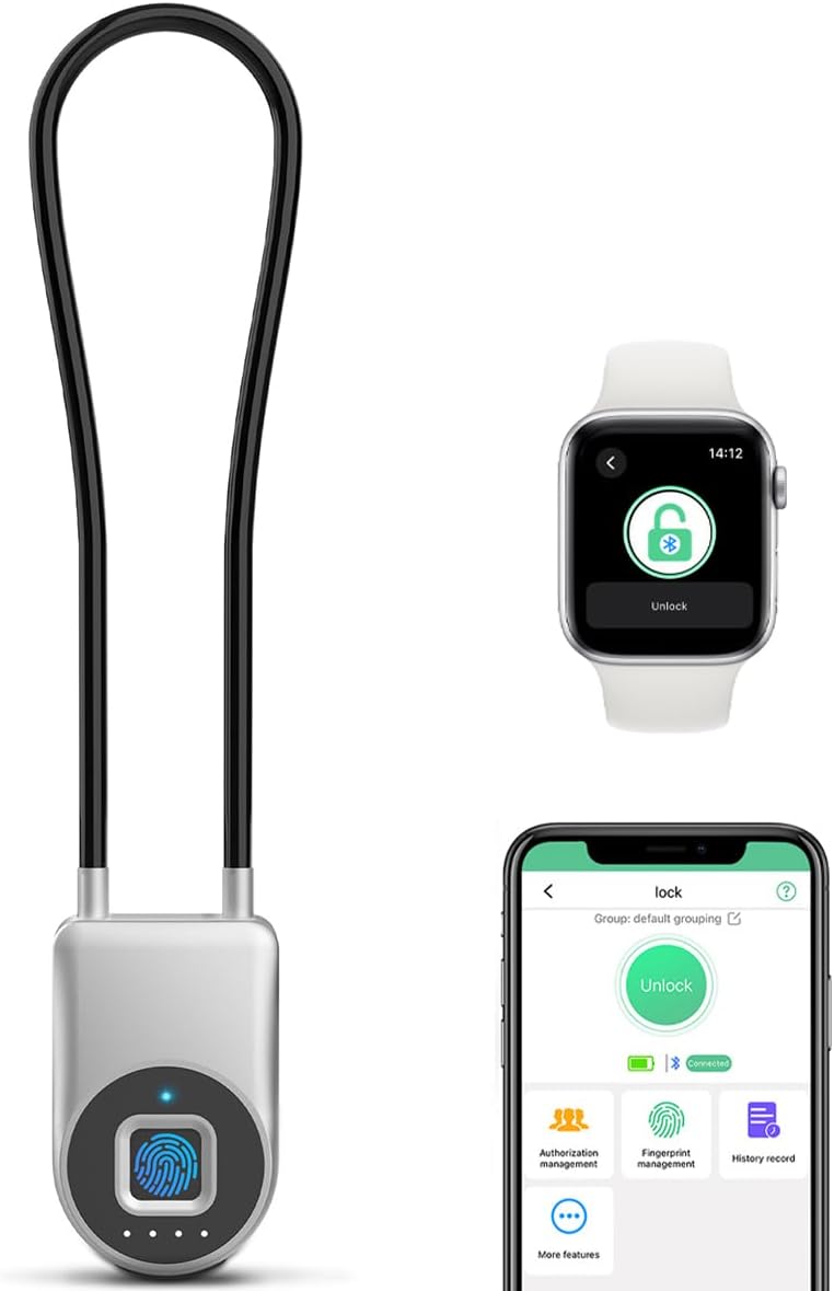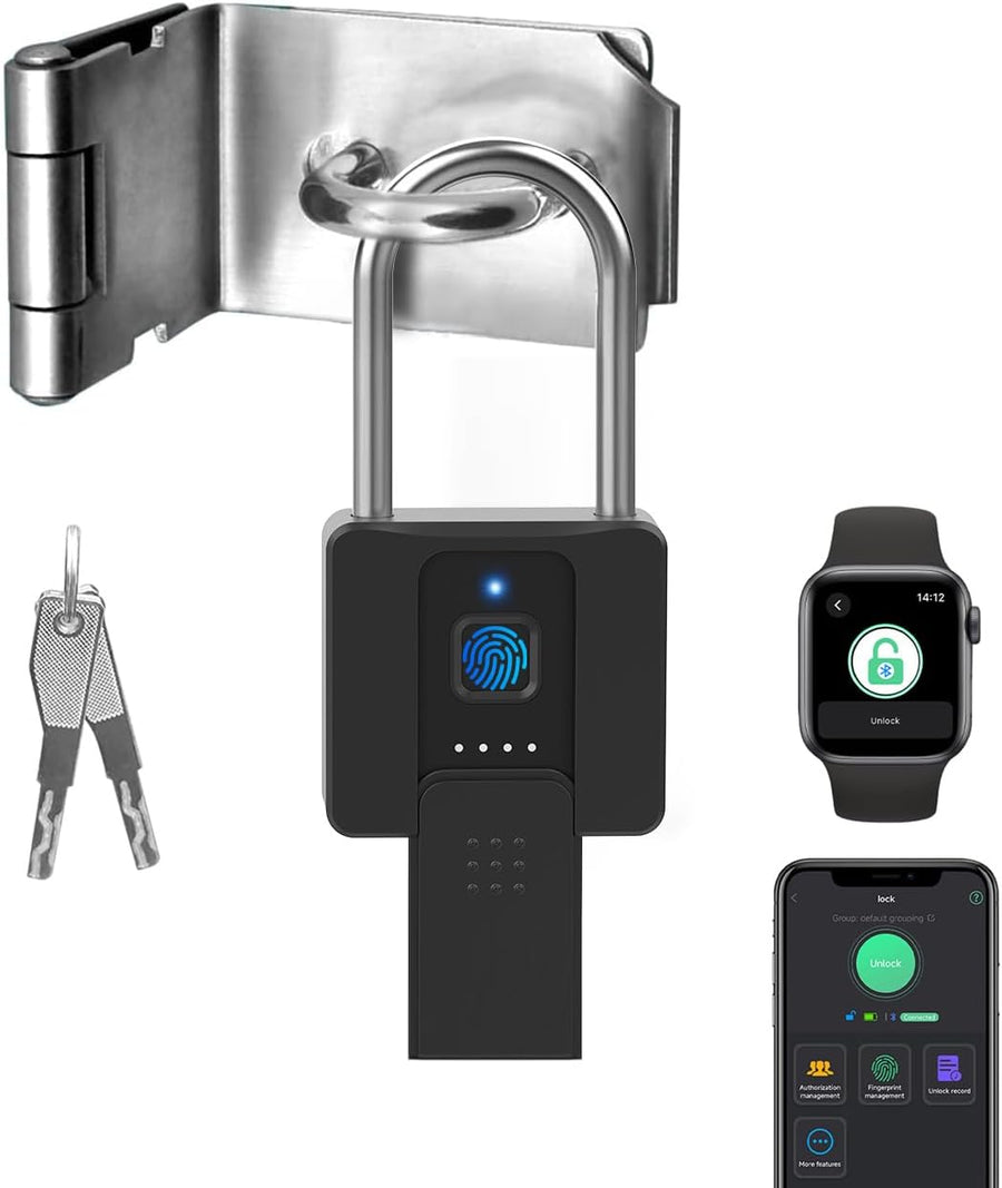 eLinkSmart Grosses Vorhängeschloss mit Schlüssel, Fingerabdruck-/Telefon-App, Remote-Autorisierung,