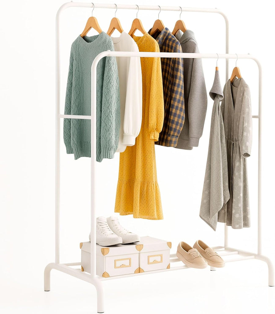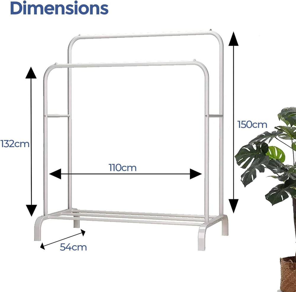 edihome, Kleiderständer, Kleiderstange, Doppelt, 110 x 150 x 54 cm, Schuhregal, Metallisch, Stabil,