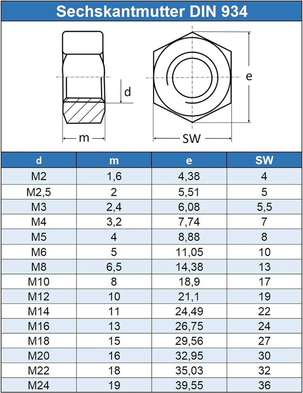 Eisenwaren2000 | M24 Sechskantmuttern (20 Stück) - Standard Sechskant-Mutter DIN 934 - ISO 4032 - Ed
