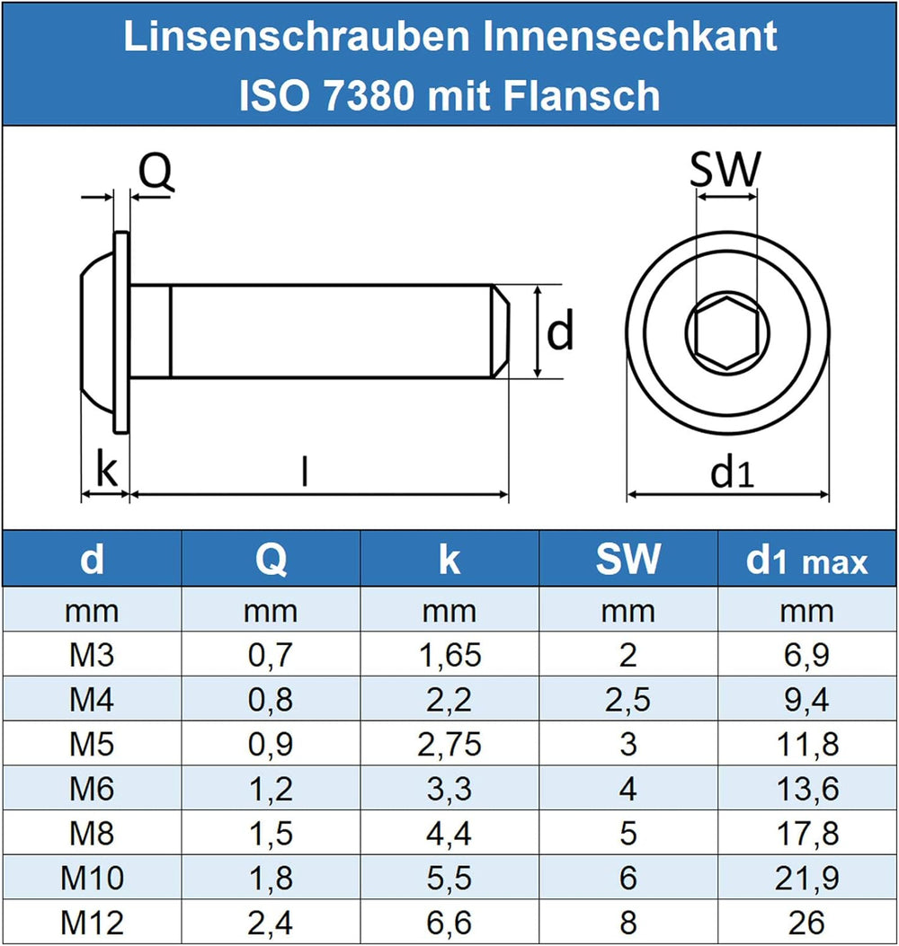 Eisenwaren2000 | M8 x 20 mm Linsenkopfschrauben mit Innensechskant und Flansch (100 Stück) - ISO 738
