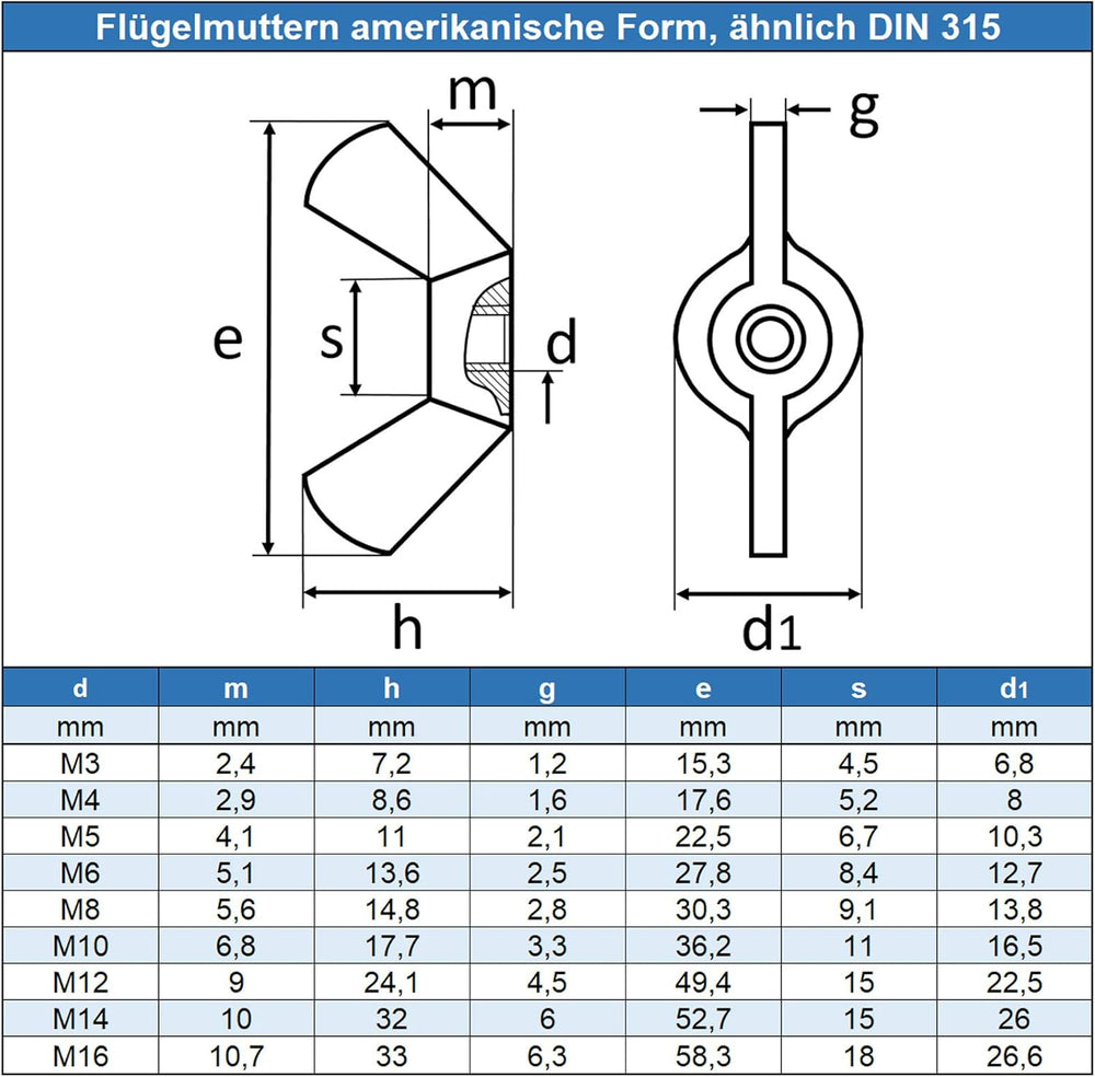 Eisenwaren2000 | M10 Flügelmuttern amerikanische Form (50 Stück) - ähnl. DIN 315 - Edelstahl A2 V2A