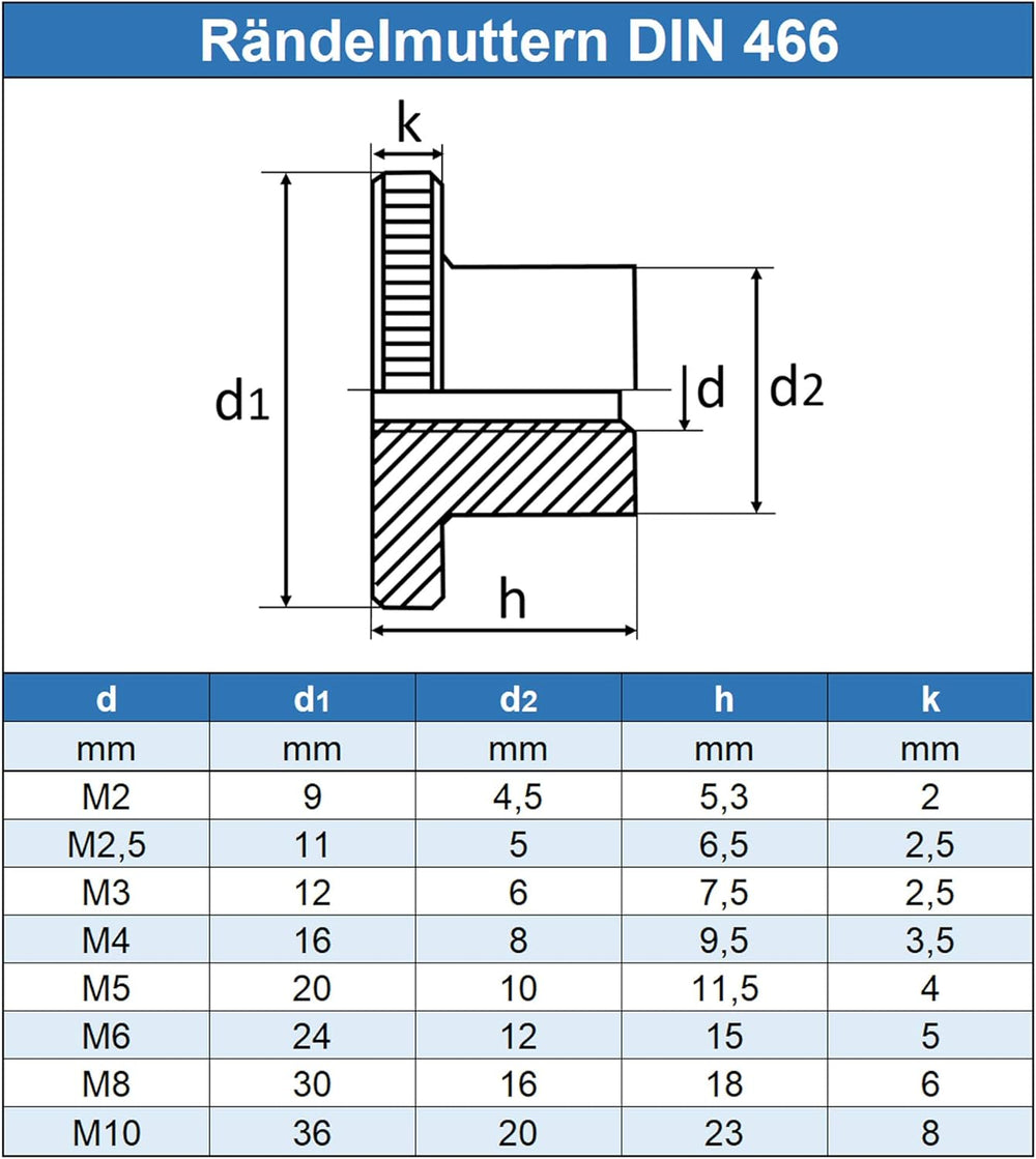 Eisenwaren2000 | M10 Rändelmuttern hohe Form (20 Stück) - Rändel-Mutter DIN 466 - Edelstahl A1 1.430