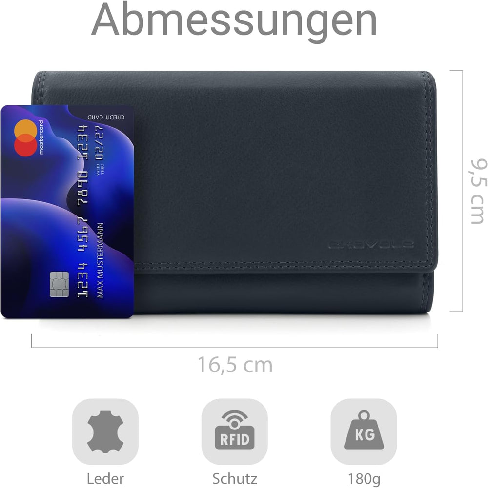 ekavale Damen-geldbörse XXL aus Rindsleder mit RFID Leder-Geldbörse mit vielen Fächern für Frau (Nav