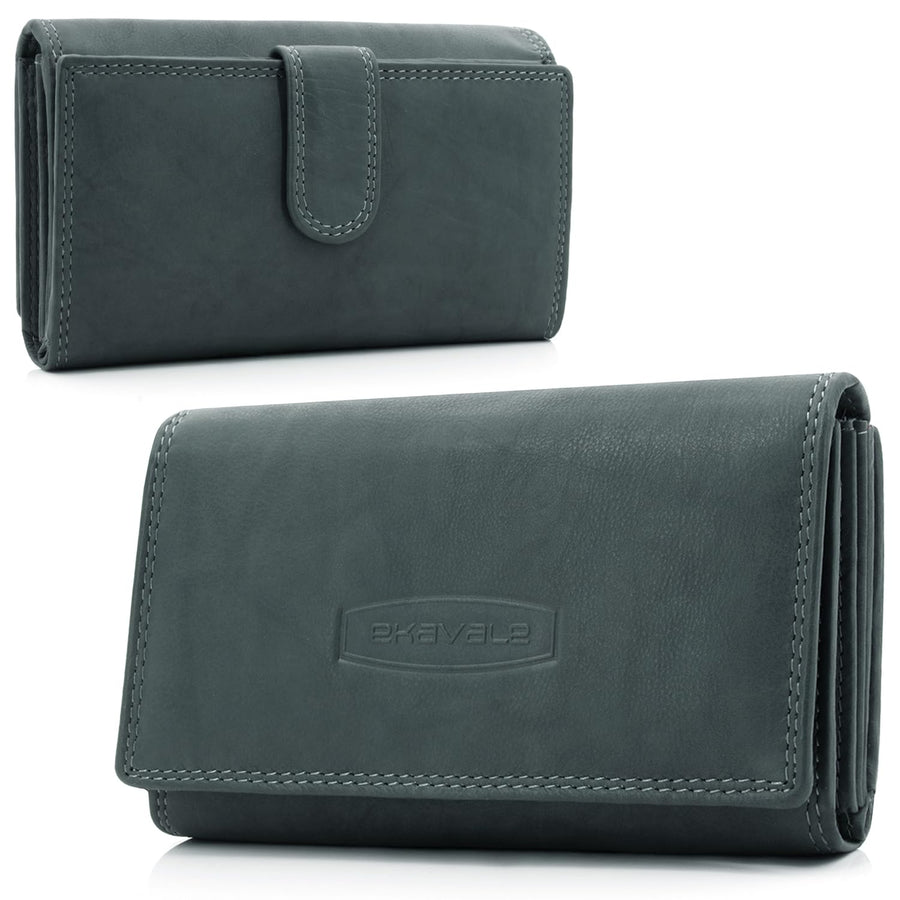 ekavale Damen-geldbörse XXL aus Rindsleder mit RFID Leder-Geldbörse mit vielen Fächern für Frau (Pis